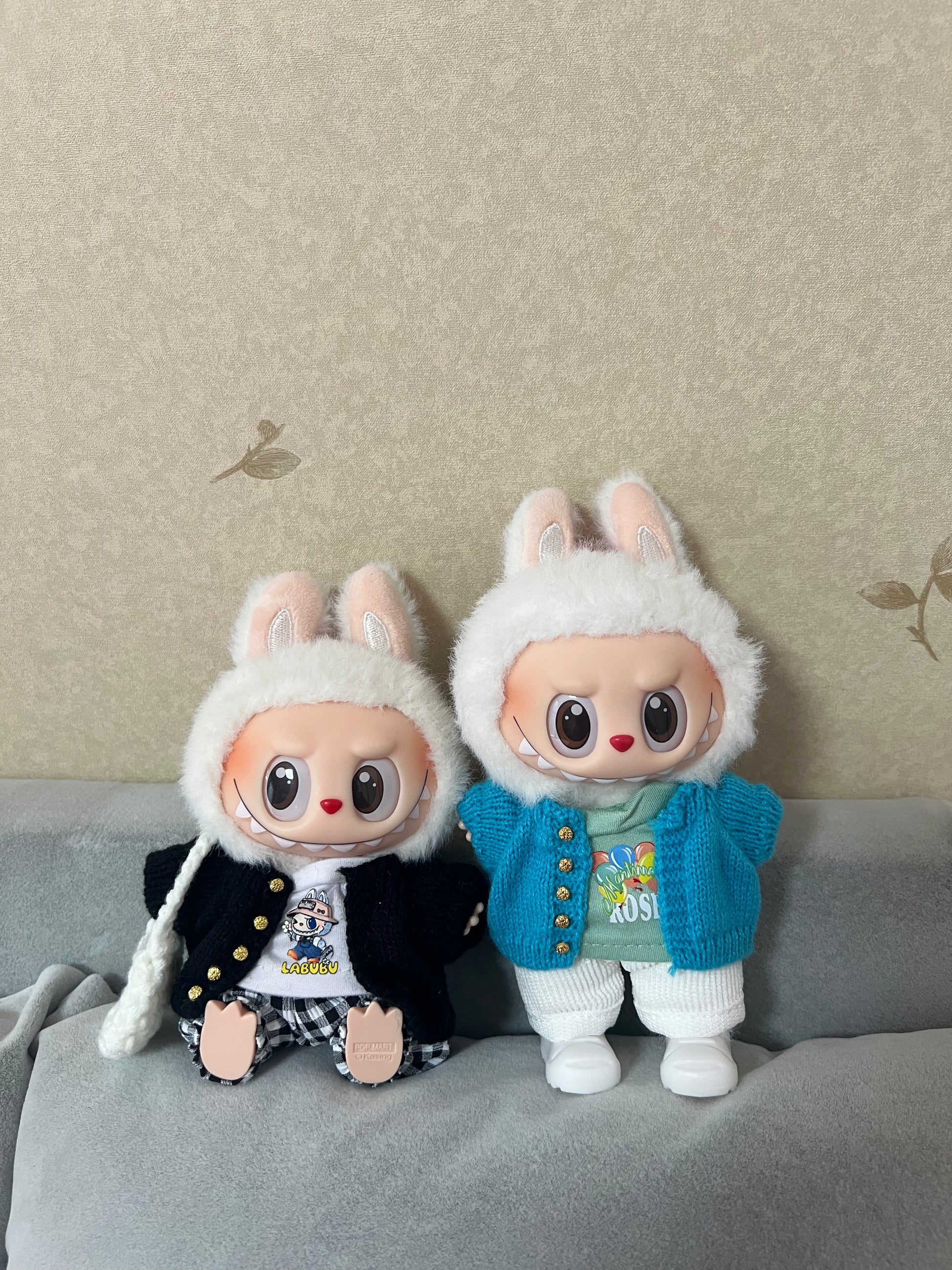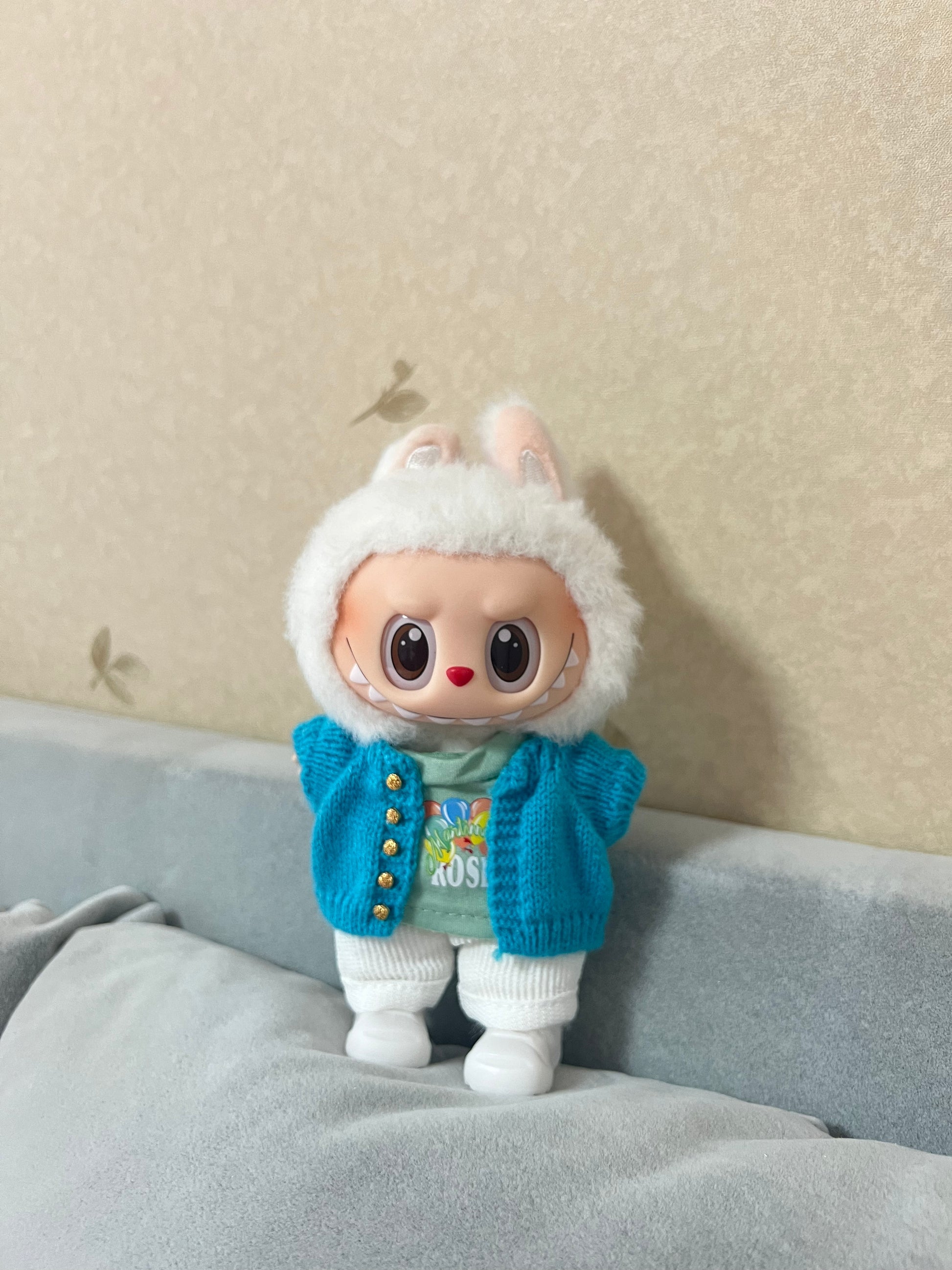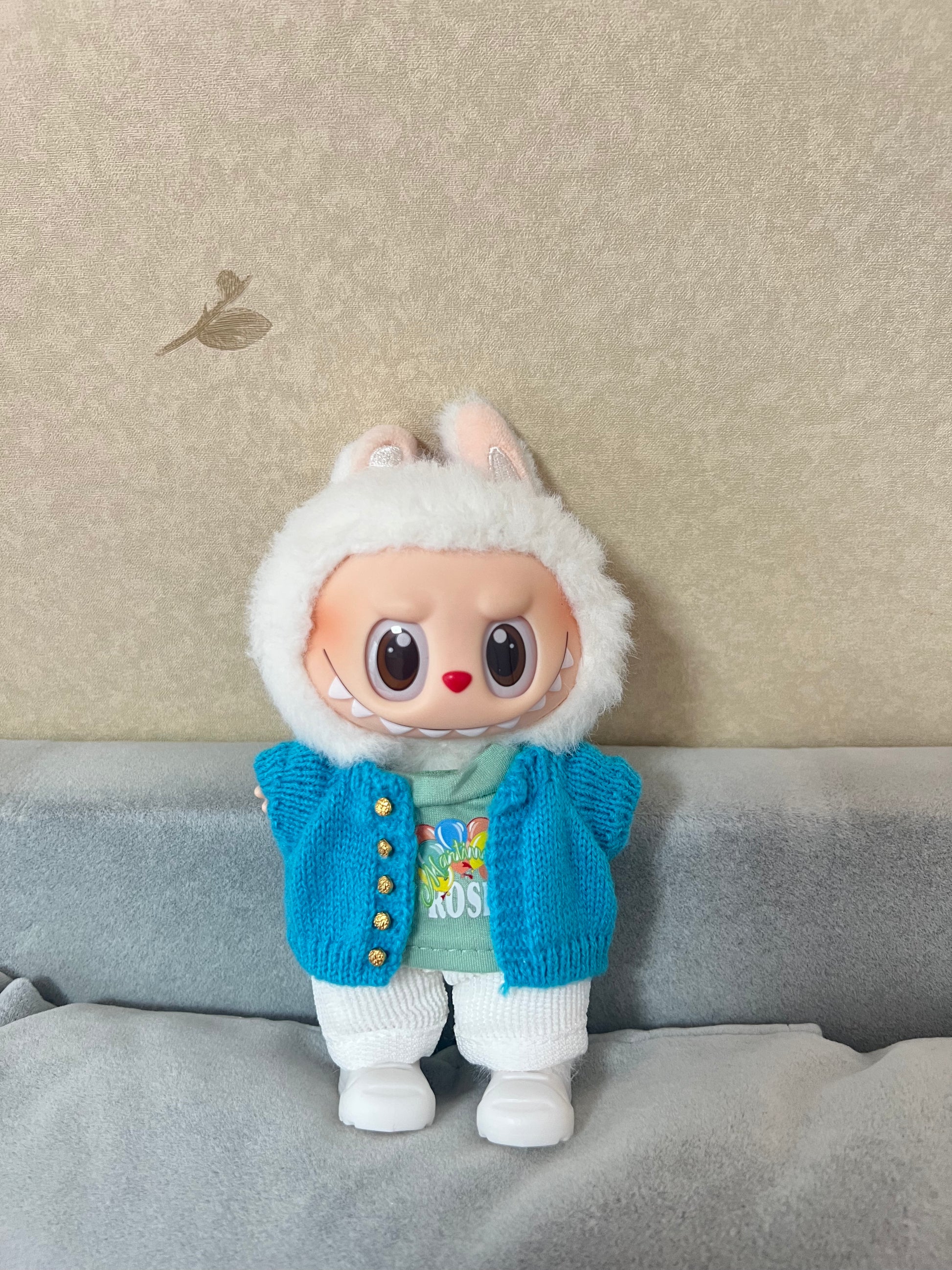 Doll Clothes - Hand Knitted Blue Cardigan Set Doll Outfit